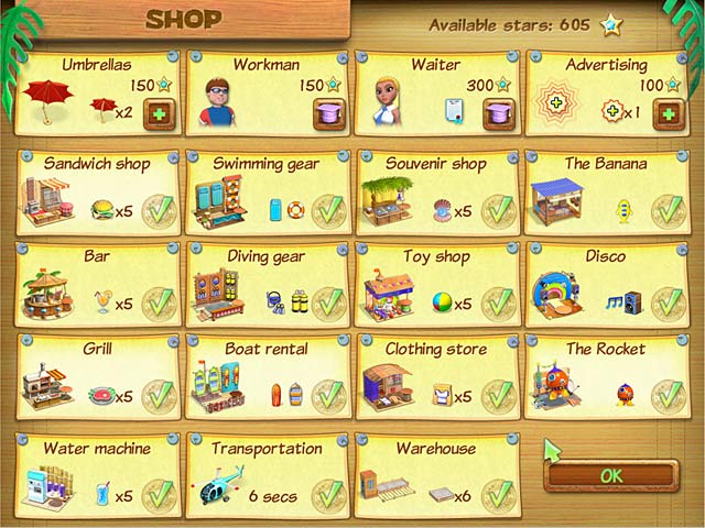 Meet beach goddess Maria and revel in the summer sun. Earn cash by tending to other sun worshippers and managing their every need. The sand and surf are your domain as you serve food, drinks, and stock the nearby souvenir shops. Interact with ten types of sun-kissed clients while conquering seven mini games in this Time Management tanning session. Catch the Beach Party Craze with cool calypso-style music in 50 levels.