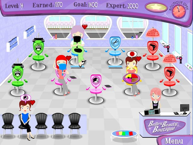 In Belle`s Beauty Boutique you must help run a beauty parlor single-handedly. The owner, Belle, needs your help to give all of her customers the treatments they want. Help her wash, cut, shampoo, and color a crazy cast of characters. Watch them gossip, flirt, and help Belle realize her dream of creating the ultimate beauty salon.