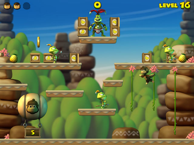 Collect bananas and other fruit while battling nasty monkeys and big bad bosses. Darwin the Monkey is a fun-loving platform game with a great jungle adventure. With 30 handcrafted levels and 6 varied gameplay types, Darwin the Monkey is sure delight you with it`s lighthearted family friendly gameplay and beautifully rendered graphics.