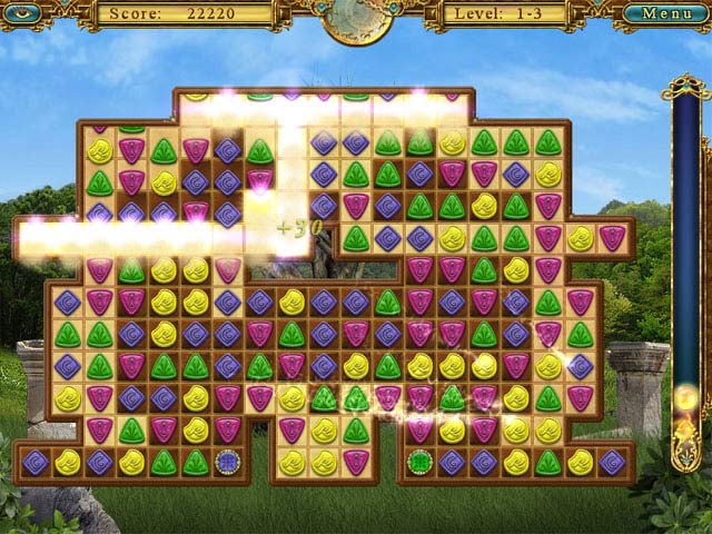 Step into the gaping black hole of a legendary cavern and behold its secrets. The walls are dripping with glittery jewels. Match groups of precious stones, and work your way towards a treasure trove of priceless stones. The Enchanted Cavern is full of five brilliant episodes and 47 enticing levels. Activate bonus items and ignite their special powers in this Match 3 dazzler.