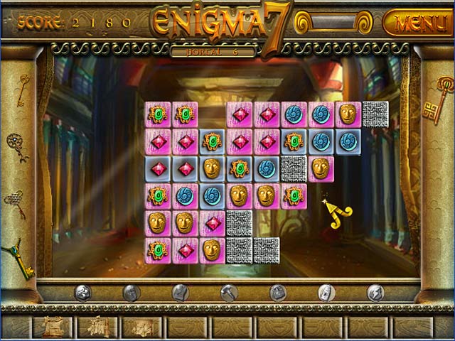 Jane is a young archaeology student who`s gone missing. In the midst of a stormy downpour, you must embark on a journey to find her through an enigma of portals. A map inside an attic reveals a door containing fragments and Match 3 puzzle pieces. Highlight tiles under the artifacts to reveal clues. Can you match four or five tiles in a row and max out the power meter in Enigma 7?