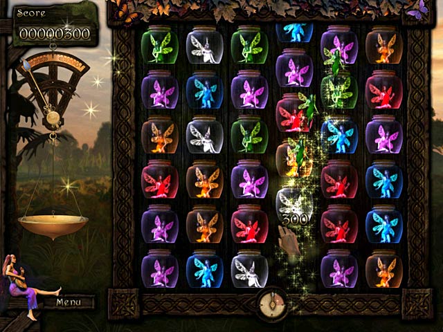 Set in a mythical backdrop of forests and elfin lore, Fairies is enthralling puzzle fun for the whole family. Gain wizardly power by sliding rows of fairies that have been captured in jars. You'll need to match sets of three or more like-colored fairy jars together to continue on a journey through more than 200 levels of gameplay. Within the five worlds there are four different gameplay modes, all enhanced by beautiful hand-drawn illustrations, 3-D graphics, and an original soundtrack.