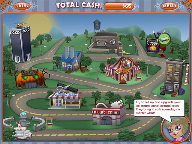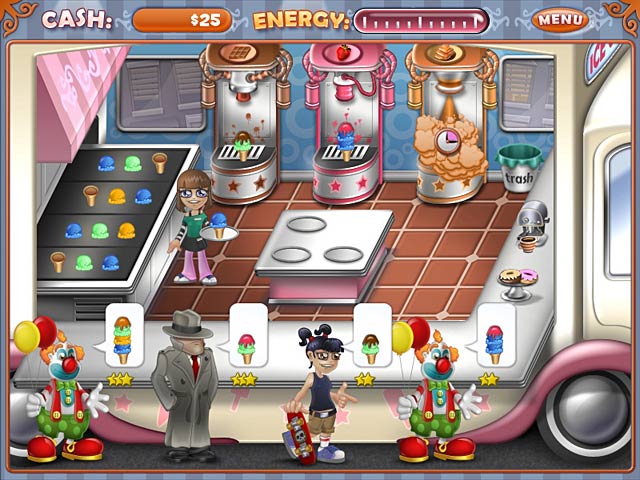 Many years ago, a mysterious tycoon started BigCo and quickly became the dominant ice cream maker. Anna has decided to start selling ice cream and take on BigCo, but needs your help to scoop and serve her way to success! Ice Cream Craze: Tycoon Takeover puts you inside of Anna’s old ice cream truck as she works her way to the top. Purchase upgrades to serve more customers in this exciting Time Management game.