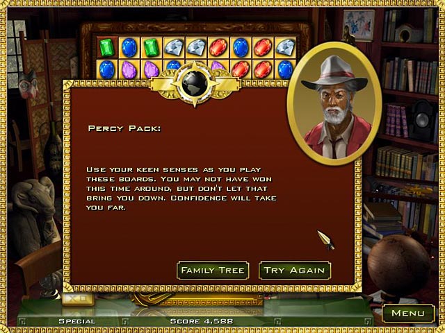 Hit the trail with Rupert on a journey through the shrines and castles of Hernan Cortes' lore. Swap jewels and collect puzzle pieces to unravel a perplexing web of family history in Jewel Quest Heritage. The Golden Jewel Board has been confiscated by the government, and is being delivered to the evil Sebastian Grenard! Investigate long-buried family secrets in order to discover the truth and save the day!