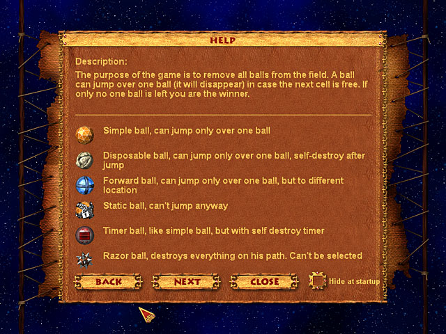 Use your strategic skills to clear the board in this jumping puzzle game. You can move any ball, but you have to use it to jump over another one. Once a ball has been jumped, it will disappear. Your goal is to leave only one ball on the board. As the game progresses, you will encounter new types of balls with new traits, making your task more difficult. Get jumping with Jumba!