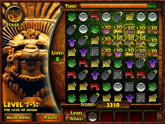 The Lost City of Gold is the swap-and-match game in which you must remove pieces by matching three or more like-colored pieces. Work quickly, though, because the time meter is keeping track of your speed. Each level has a piece-collection goal and to move to the next level, you'll need to fulfill this goal...think you can do it?