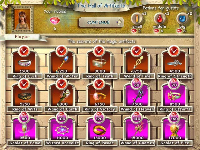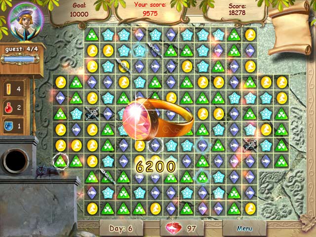 In Magic Shop, customers enter your store and order artifacts. Make the items by clicking on groups of matching elements. If your guests have to wait too long, they become impatient and will eventually leave. Collect rubies and purchase enchantments that will make your patrons happy. You can also use spells that will help you collect the elements you need. As simple as tapping your mouse and as beautiful as a spring day, Magic Shop will charm you from the moment you begin playing!
