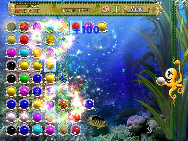 Life in the Pearl Reef was serene until the Sea Dragon came to enslave it. Help a brave little Octopus protect his home from the cruel mage and his evil piranhas. Can you defeat an underwater villain with numerous Match 3 battles? The wise Goggle-fishes have developed powerful weapons to aid you in this action-filled Puzzle quest. Match piranha-filled pearls and save the day in Pearl Diversion.
