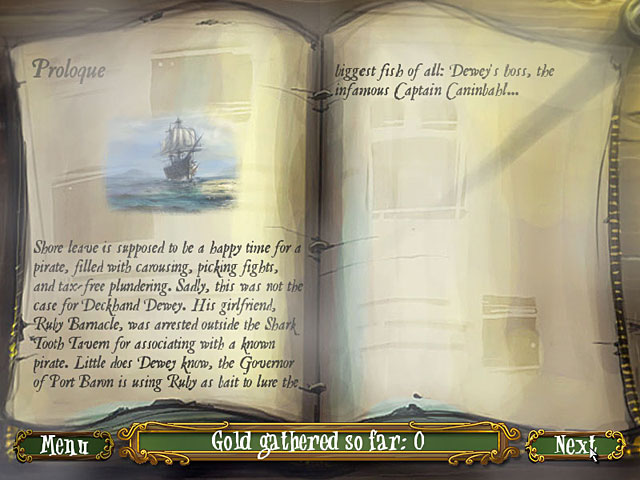 Follow the adventures of Captain Caninbahl, Barley, Deckhand Dewey, Ruby Barnacle, and Planky the Parrot as they plunder their way through caves, underwater shipwrecks, and dangerous port towns. The Pirate Tales is a matching puzzle game, spanning 100 levels. Perform typical pirating duties, plunder treasure, and fight opponents in your quest to rescue Dewey's girlfriend, Ruby Barnacle.
