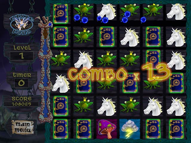 Enter the magical world of Pixie Pond as you race against time to match as many magical objects as you can. Once the clock runs out, watch as your matches turn into huge combos with huge scores. Featuring tons of levels of insane combos with magical objects for even more mayhem, Pixie Pond is an entrancing experience that will keep you glued to your seat for hours.