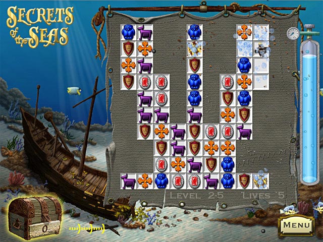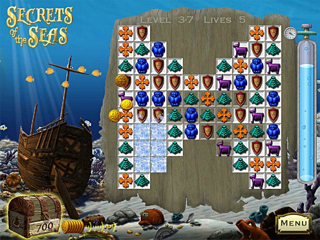 Discover sunken shipwrecks and explore the mysteries of one of the world's greatest lost treasures: the Crown of the Last Inca King. Secrets of the Seas takes you on a journey of discovery as you match ancient relics to unlock each level. Choose between playing against the clock in Adventure Mode or use your best strategies to beat the Untimed Mode. This unique game combines the best elements of some of your favorite games. Unlock the Secret of the Seas today!
