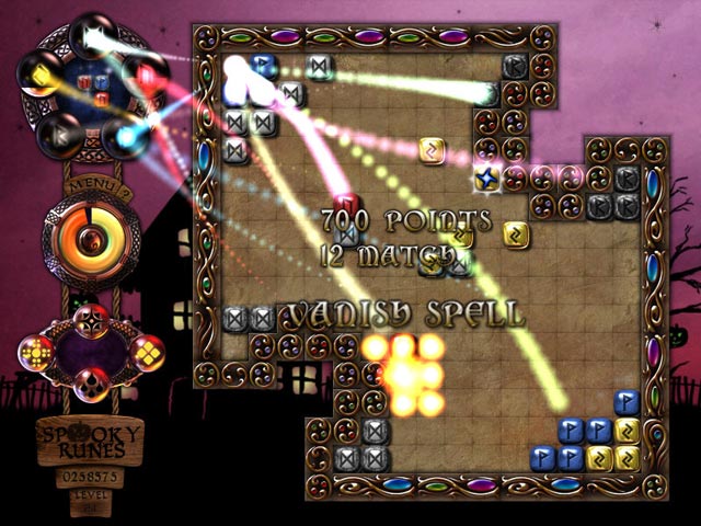 Spin and place runes to make lines of three or more in Spooky Runes, a fun and thrilling game for the Halloween season! Get into the spirit of the holidays and rotate the haunted runes to activate powerups and fill the orbs before the clock runs out! With creepy music, fun Match 3 gameplay, and eerie graphics, Spooky Runes will add thrills and chills to your Halloween season!