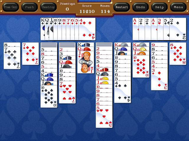 Spyde Solitaire updates the classic spider solitaire game with dynamic visuals, multiple play modes, and a clever soundtrack. The main game mode progresses in difficulty as you conquer the map and prove your mastery. You can even play a game based on the options that you enjoy most. The drawn character cards and period musical flourishes accentuate the playing experience of Spyde Solitaire.