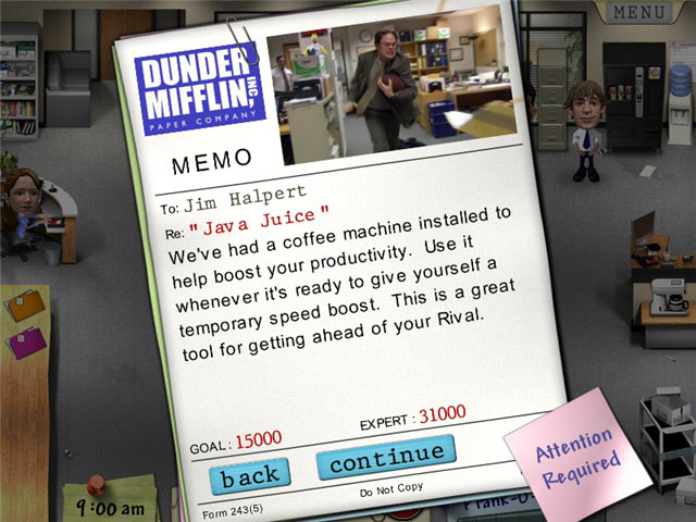 Those who think they could survive the zany workplace scenarios featured in NBC`s comedy The Office can soon put the absurd to the test with an all-new game based on the Emmy Award-winning television series. Immerse yourself in the hilarious environment by maneuvering through the quirkiness while spending a year at the Scranton branch of the Dunder Mifflin Paper Company. The frenzied fun of The Office game will have you competing to be the best paper salesperson.