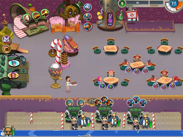 Whether a patron wants a plushy pup or an adorable doll, you've got to move fast and keep ahead of the game. Earn big tips by completing orders fast and serving the elves plenty of food and drinks. You can even hire a famous rock band to perform at your café! Can you earn enough money by the end of each day to earn the Expert Status?