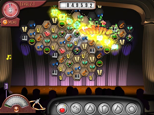 The Tropicabana Hotel and Casino is now open for business. As the new owner, you`ll need to hire a band to stage the hottest show in town. Make the right matches before an audience - you`ll hear the roar of their excitement, or the silence of their stare. Be on the lookout for stage mice as they scamper around in effort to distract you. Earn money after each level and use it for Tropicabana upgrades, or maybe even a date with little lady luck.